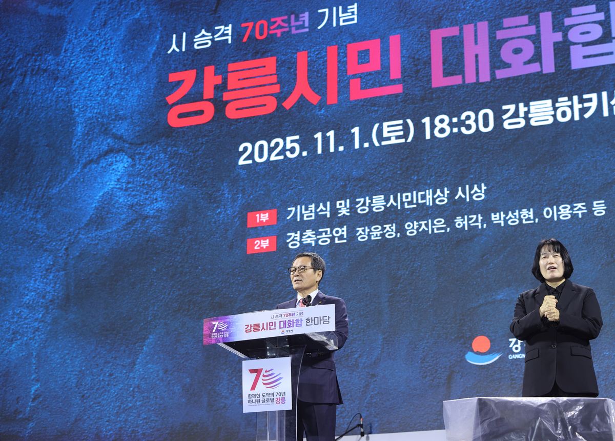 작성일 2025.11.01, 조회수 25 시 승격 70주년 기념 강릉시민 대화합 한마당 기념식 사진 확대보기 사진 확대보기 사진 확대보기 사진 확대보기 사진 확대보기 사진 확대보기 사진 확대보기 사진 확대보기 사진 확대보기 사진 확대보기 이전 이미지 보기 다음 이미지 보기 이전 썸네일 보기 다음 썸네일 보기 김홍규 시장은 1일 오후 강릉하키센터 야외광장에서 열린 시 승격 70주년 기념 강릉시민 대화합 한마당 기념식에 참석했다. 목록