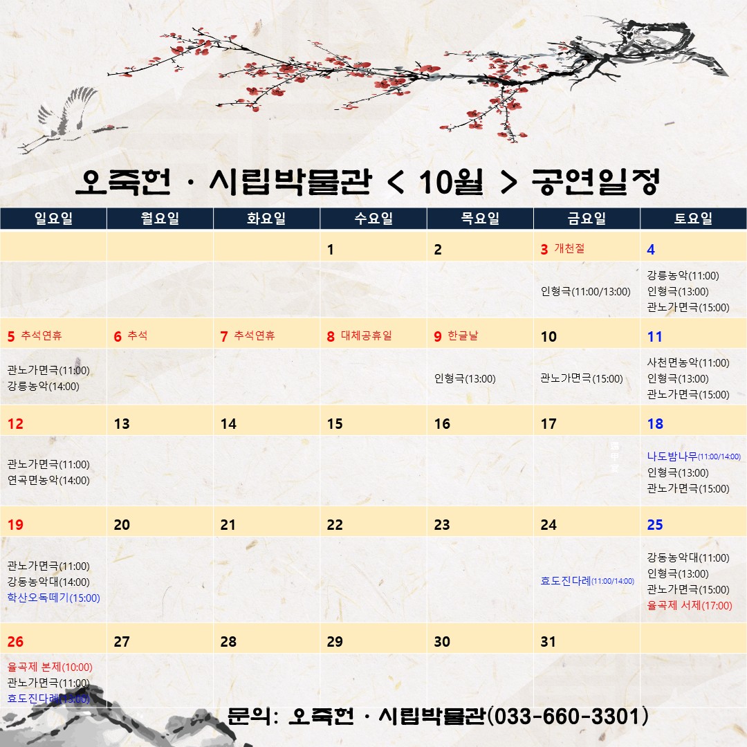 | 제목 | 오죽헌 10월 공연 일정(변경) |