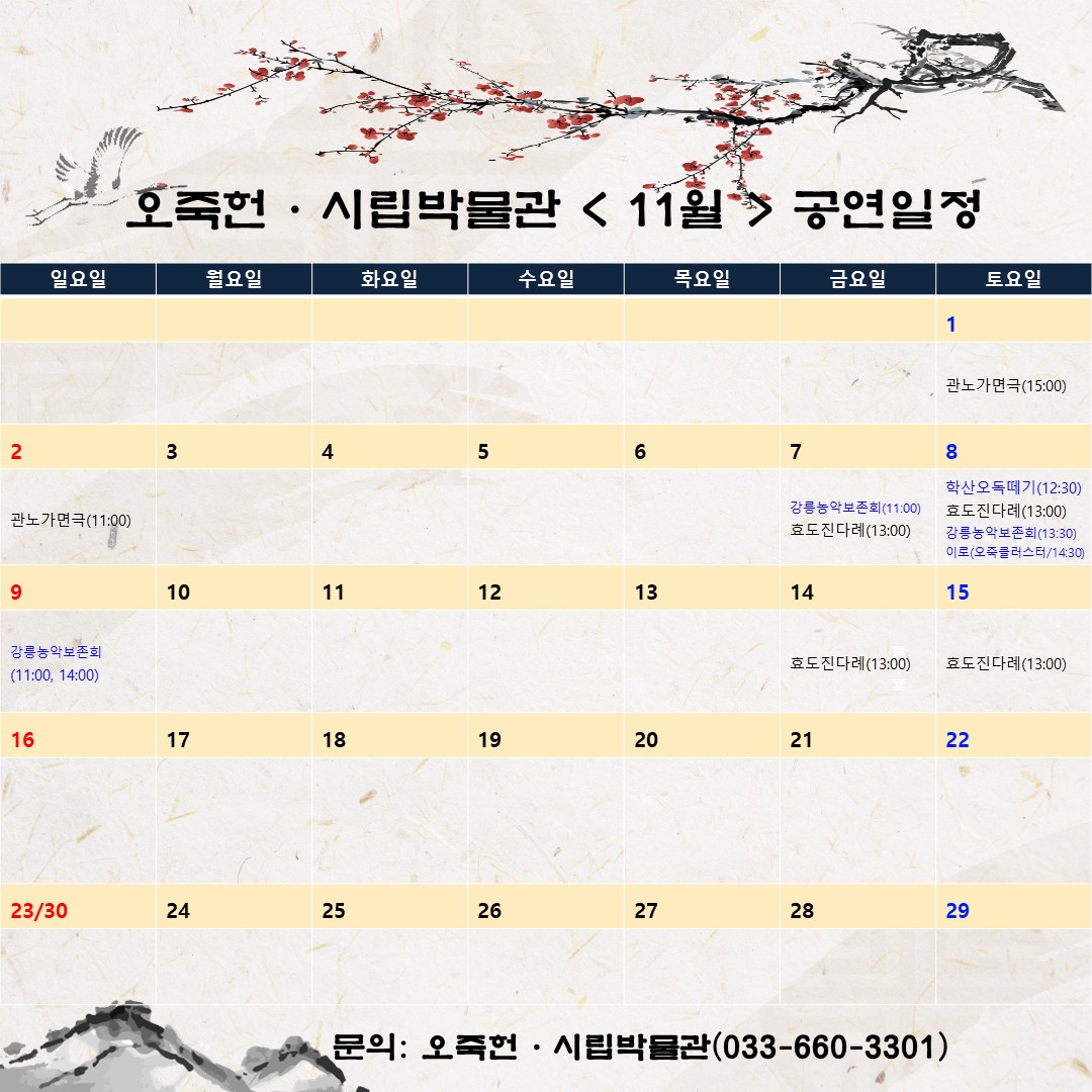 | 제목 | 오죽헌 11월 공연 일정(변경) |