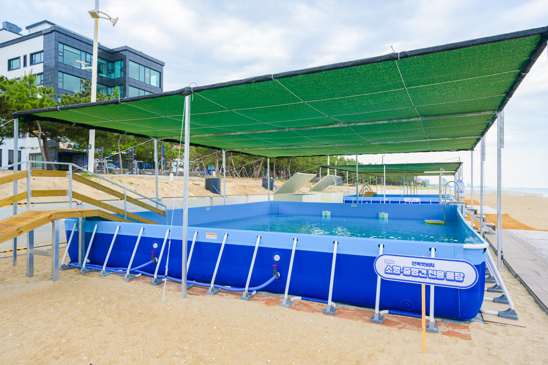 小型犬・中型犬・大型犬ごとの専用プールと、犬たちがプールに出入りしやすいようにアーチ型の木製橋を設置している。プールの利用料はシャワー込みで3,500ウォン(大人)。利用する際は、必ず飼い主が同伴する必要がある。