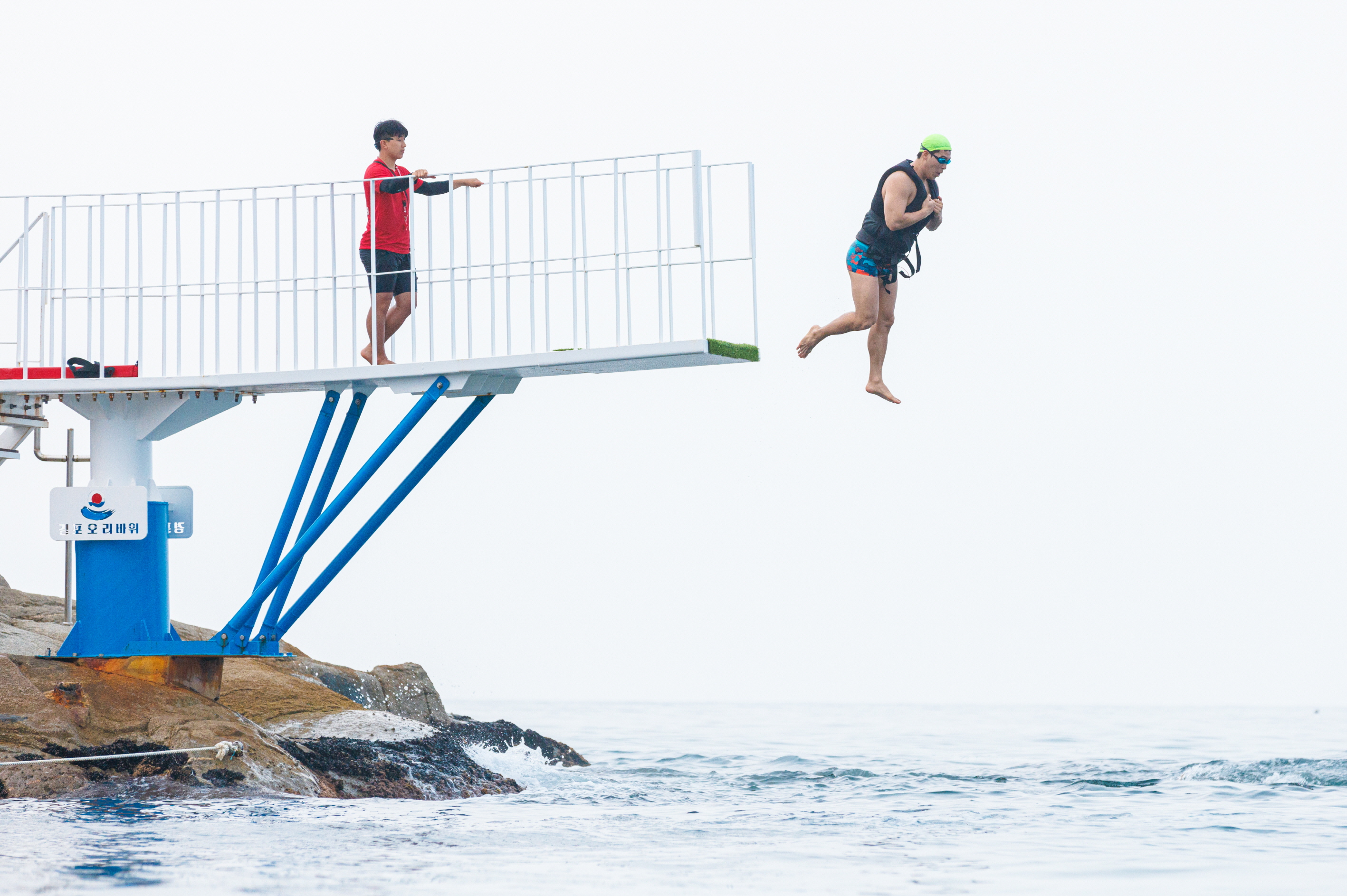 フローティングブリッジ(フントン)を活用したアヒル岩のダイビング台や水遊び場などで多彩なアクティビティが楽しめる。海辺から海に向かって180m離れたところにある、アヒル岩のダイビング台までは、長さ130mのフローティングブリッジの上を歩いて渡り、残りはライフガードと一緒に泳いで渡る。ライフジャケットなどの安全装備は必須!鏡浦海辺で水の上を歩く楽しさとダイビングのスリルを満喫しよう。