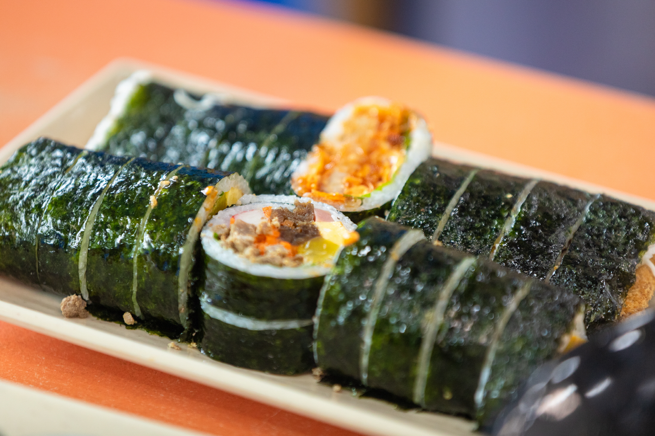 基本に忠実なオリジナルキンパはもちろん、材料を少し変えると無限の変化も可能となる。味付けした牛肉が入った牛肉キンパ、ツナとマヨネーズが調和した香ばしいツナキンパ、サクサクのトンカツに辛いソースを加えた辛口トンカツキンパまでキンパ屋さんごとに個性的なメニューが味わえる。