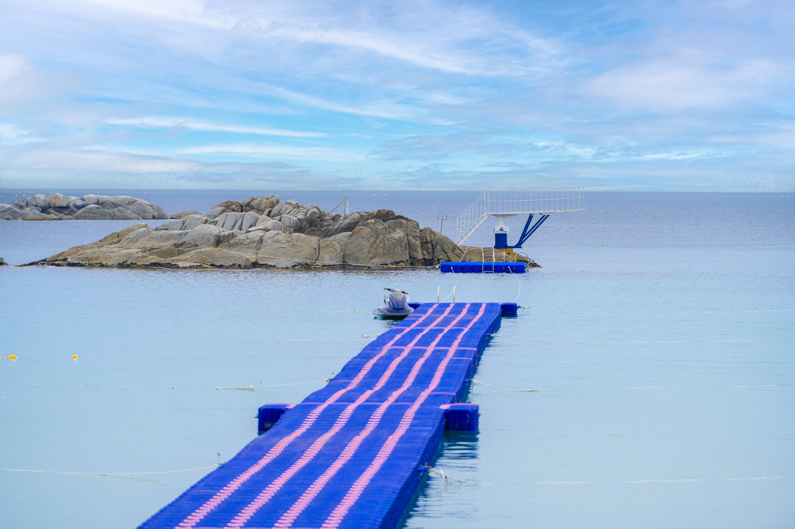 フローティングブリッジ(フントン)を活用したアヒル岩のダイビング台や水遊び場などで多彩なアクティビティが楽しめる。海辺から海に向かって180m離れたところにある、アヒル岩のダイビング台までは、長さ130mのフローティングブリッジの上を歩いて渡り、残りはライフガードと一緒に泳いで渡る。ライフジャケットなどの安全装備は必須!鏡浦海辺で水の上を歩く楽しさとダイビングのスリルを満喫しよう。