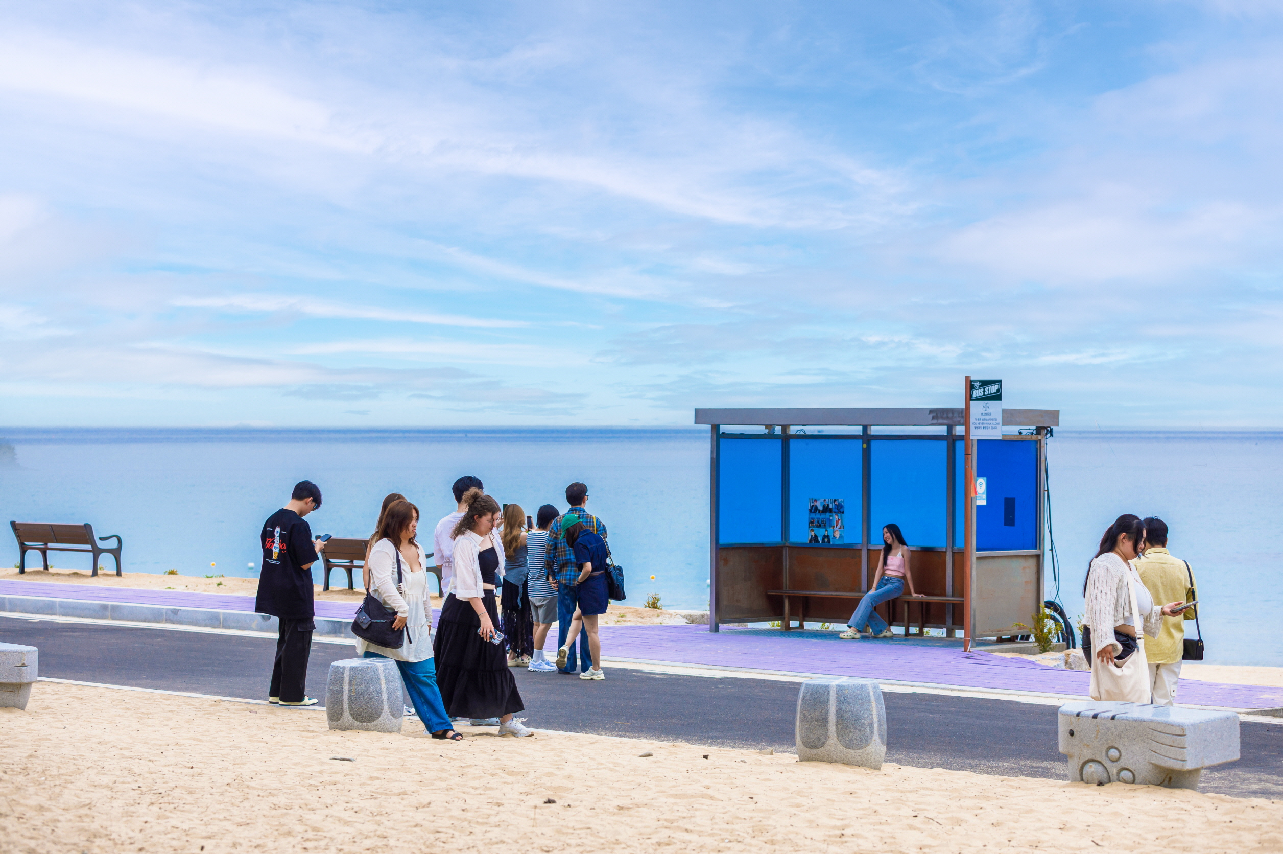 その他、近くに、K-POPを代表する世界的な人気グループBTSがアルバムジャケットを撮影した「BTSのバス停」や、ドラマ『トッケビ〜君がくれた愛しい日々〜』のロケ地である領津防砂堤などの観光スポットが点在しており、注文津海辺で充実した時間を過ごすことができる。