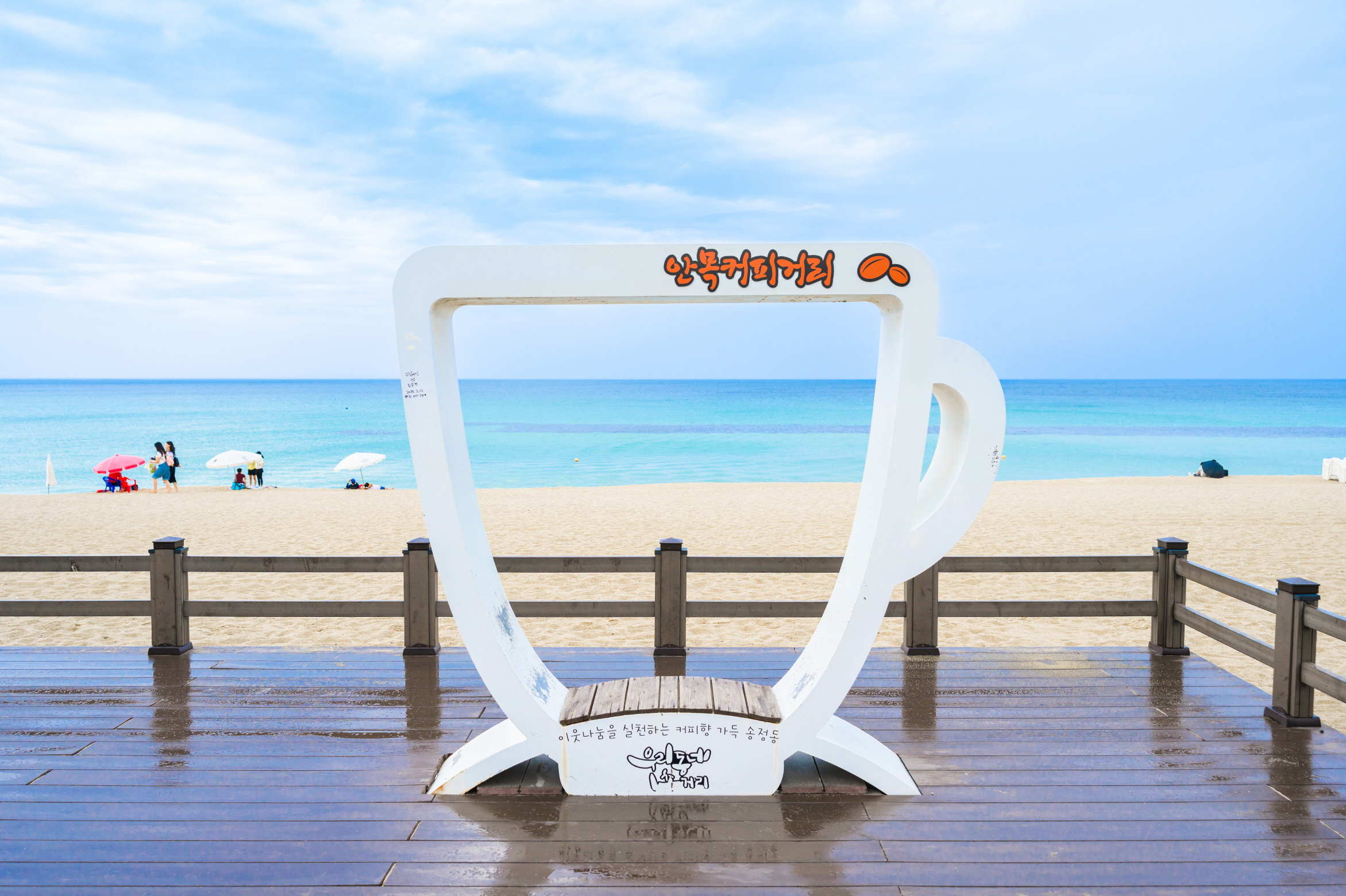 安木海辺には江陵屈指の観光スポットである江陵コーヒー通り、ヨットツアーを楽しめる江陵港があり、夏だけでなくオールシーズン多くの観光客でにぎわっている。
