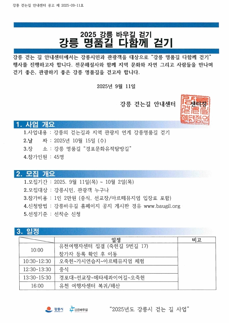 | 제목 | 2025 강릉 명품길 다함께 걷기 "경포문화유적탐방길" |